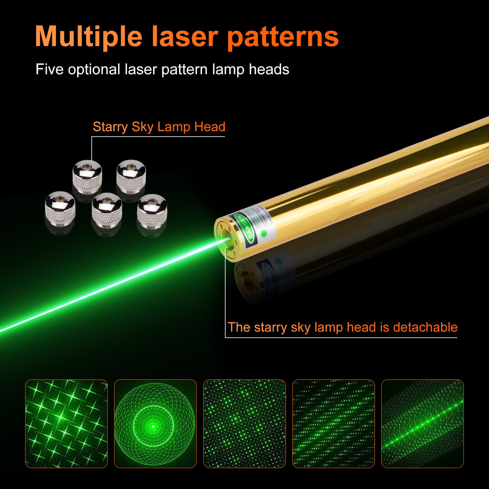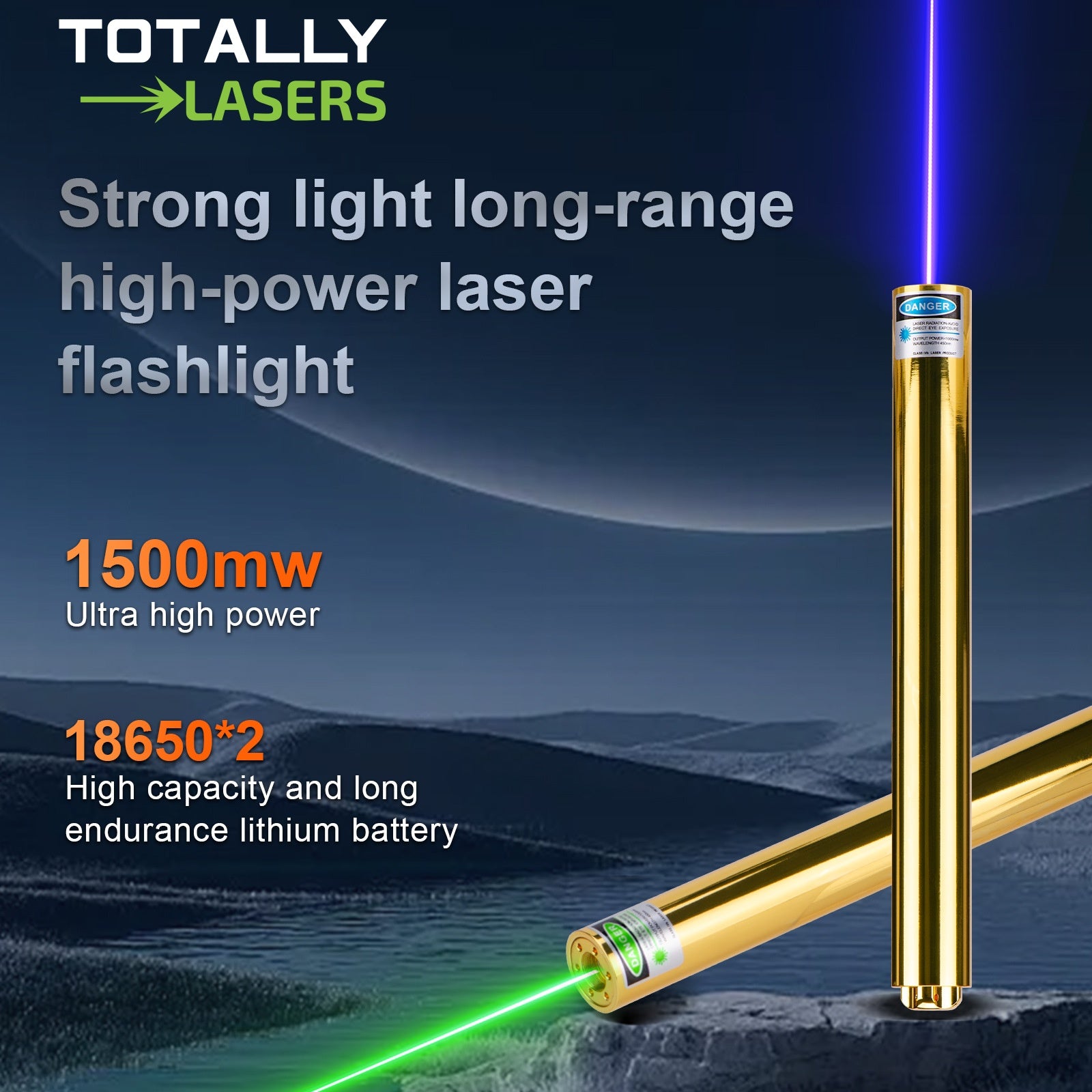 - Outdoor beam visibility and distance: 100--300 mW (green/blue).