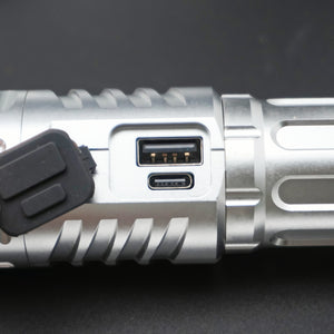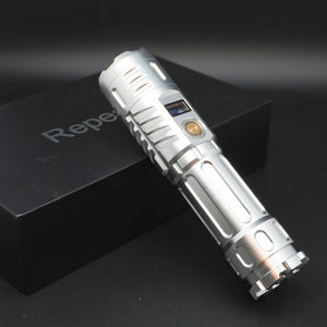 Robustes Design: Hergestellt aus hochwertigen Materialien ist dieser Laserpointer langlebig und seine glatte silberne Oberfläche ergänzt seine moderne Funktionalität.