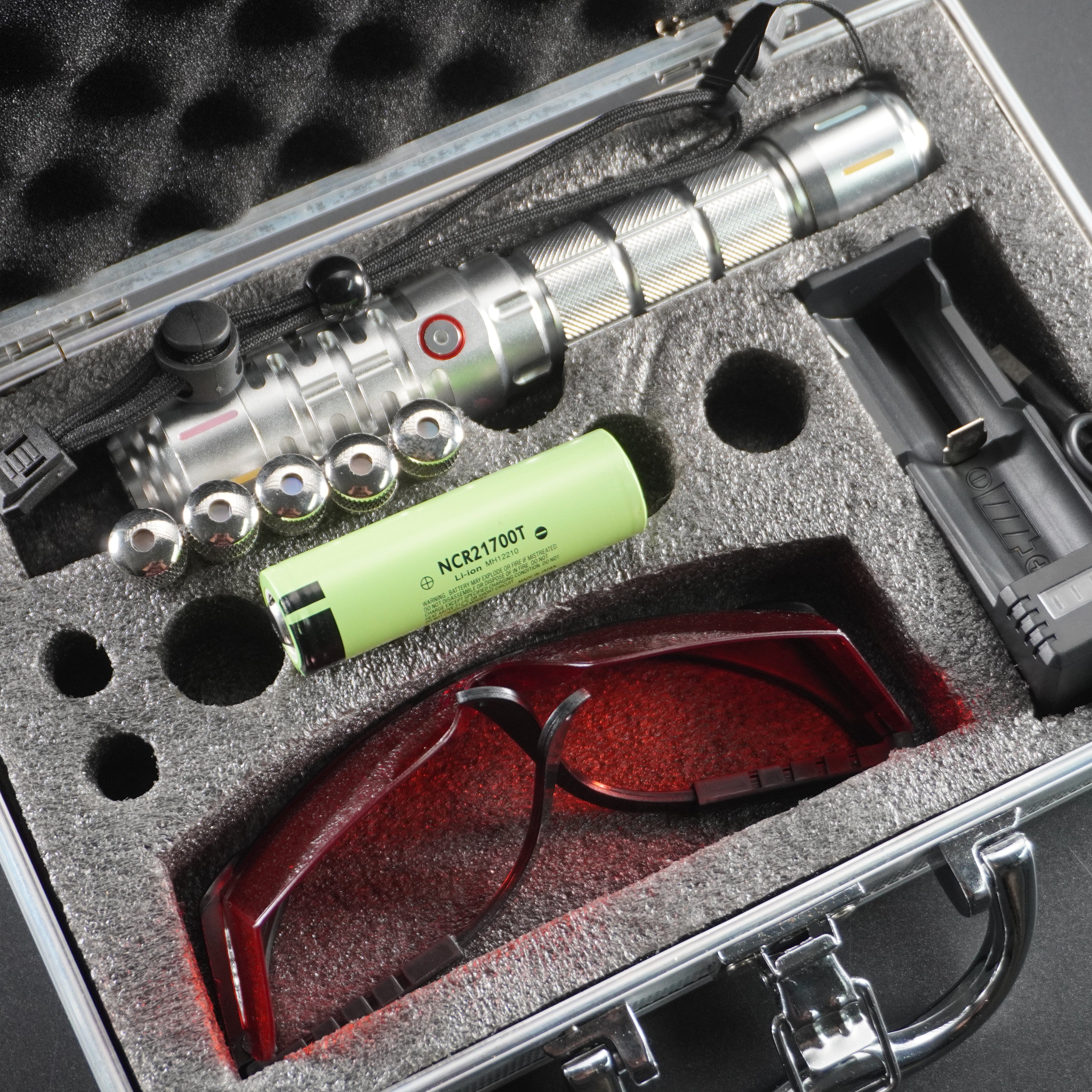 High‑power lasers can cause instant eye injury and skin burns. Always use wavelength‑rated laser safety goggles, avoid reflective surfaces, and never aim at people, animals, vehicles, or aircraft. Check your local laws before purchase and use.